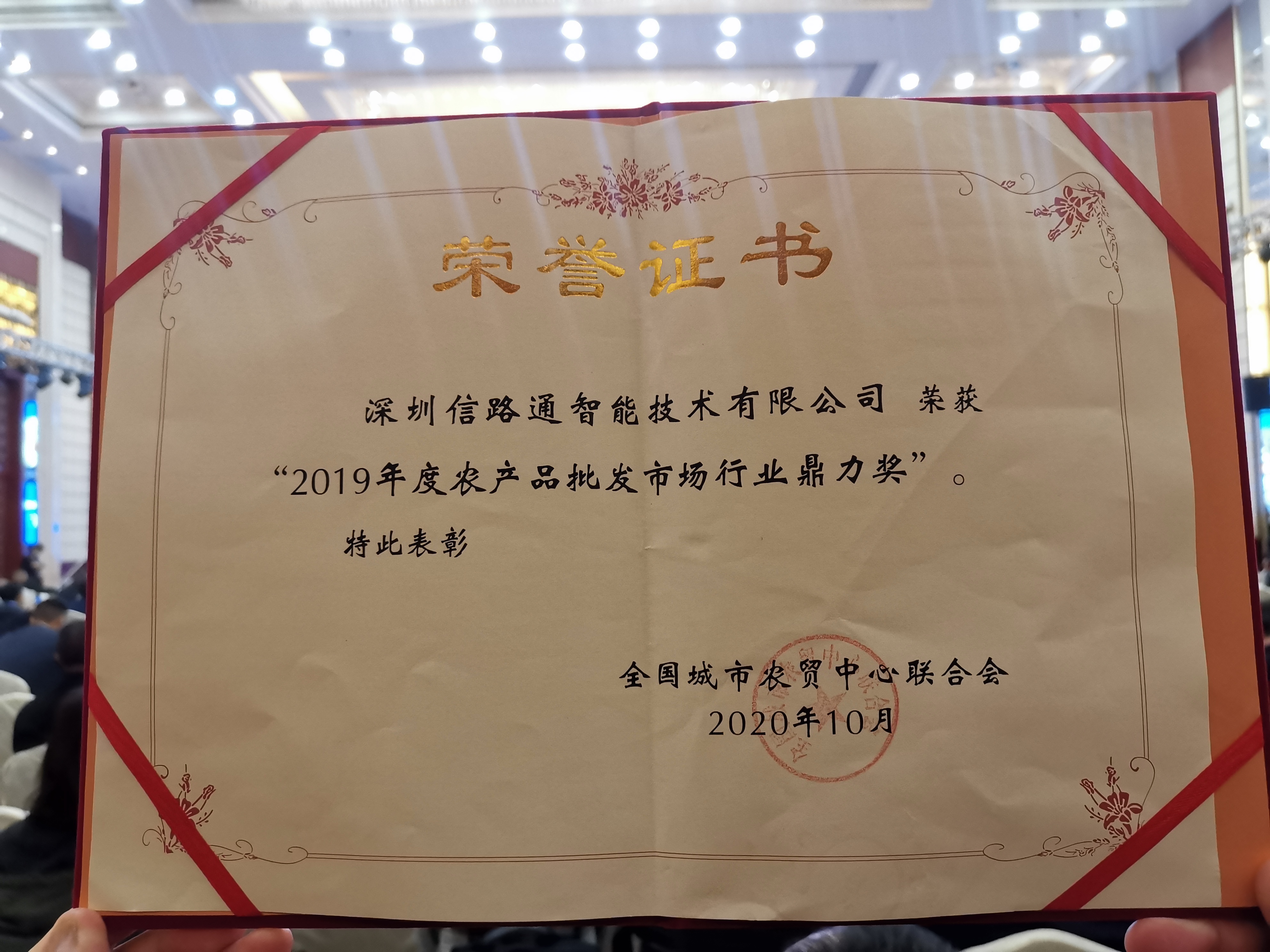 頒獎盛典上,信路通再度榮膺“2019年度農產品批發市場行業鼎力獎”。信路通持續使能農批市場、物流園區智慧停車管理,助力企業降本增效,持續兩年的肯定,亦是市場對車型識別一體機的高度認可與最好褒獎。